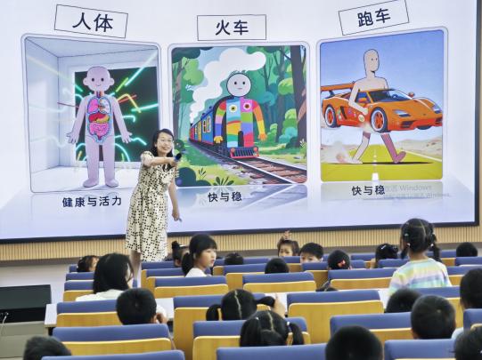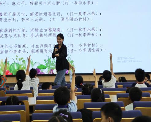 5月21日中午,食品卫生与营养教研室许琪、刘霞老师带领“童”心协力 “营"造美好社会实践小组,分别走进上海中医药大学附属浦东实验小学与实验中学,开展“营养与运动”为主题的科普宣讲活动。活动采用"理论讲解+互动体验"的创新模式:专业教师系统讲解了"彩虹餐盘"膳食搭配原则、健脑食物选择技巧及科学运动方法;实践团队的同学则通过"食物连连看"、"营养谜语竞猜"等趣味游戏,结合二十四节气时令特点,向中小学生传授传统中医食疗智慧。活动现场气氛活跃,200余名师生在轻松愉快的互动中掌握了实用营养知识。此次活动寓教于乐,为校园营养科普实践注入新的活力。