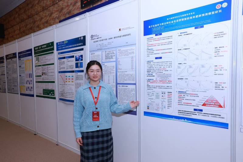 中华预防医学会行为健康分会于2025年10月24日-26日在复旦大学举办第六届跨学科行为健康学术会议,我院2021级预防医学本科生李美玥、2023级公共卫生硕士研究生毛丽君参加。李美玥同学以《基于机器学习算法和社会生态学模型的老年肥胖预测模型研究》为题,在跨学科行为健康会议“新锐之星”本科生分论坛做学术报告。